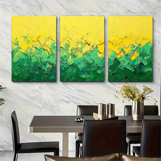 3pcs Abstract Thick Textured Yellow Green Painting Metal Print Ready to Hang Art