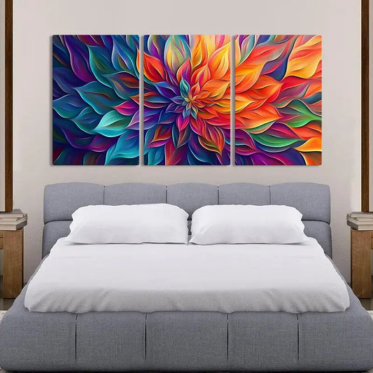 3pcs Vibrant Abstract Flower Canvas Metal Print Ready to Hang Art