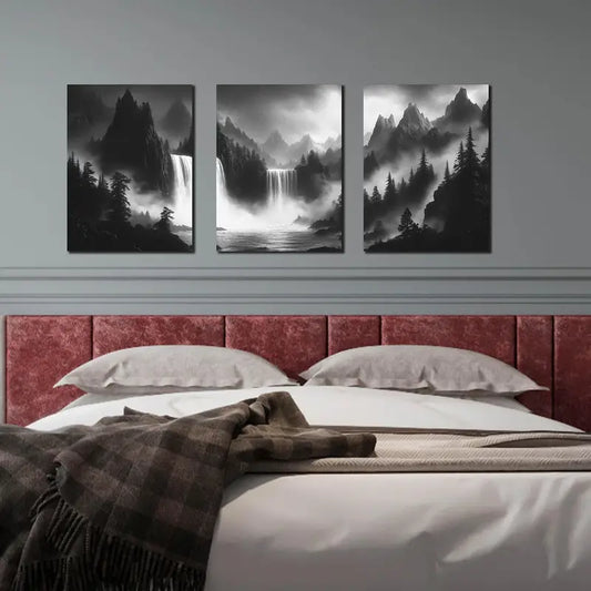 3pcs Foggy Forest Wall Art Metal Print Ready to Hang Art