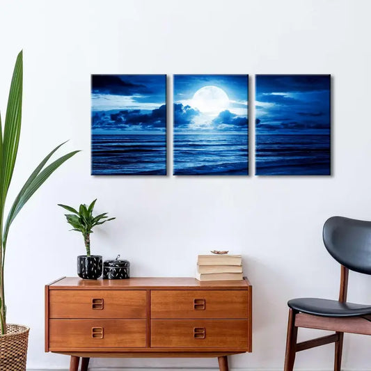 3pcs Blue Clouds Moonlit Seascape Metal Print Ready to Hang Art
