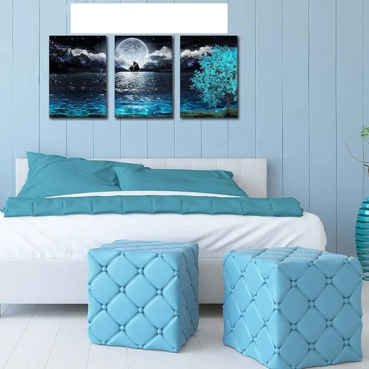 3pcs Moonlit Ocean & Tree Metal Print Ready to Hang Art