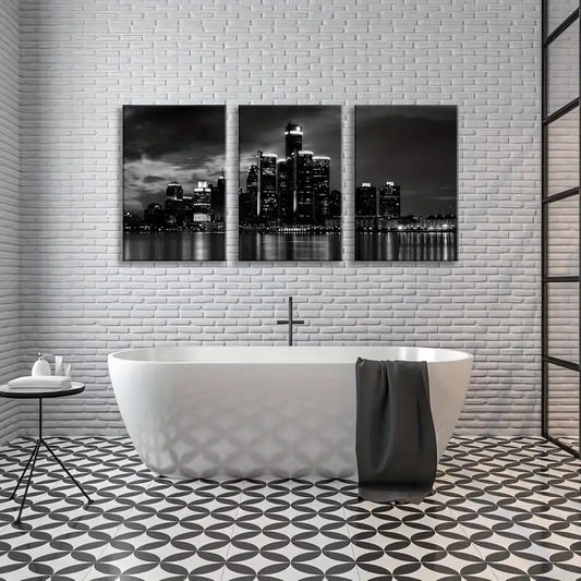 3pcs Beautiful Detroit Skyline Black & White Canva Metal Print Ready to Hang Art