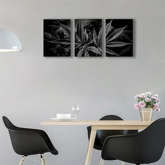 3pcs Black And White Marijuana Plant Metal Print Ready to Hang Art