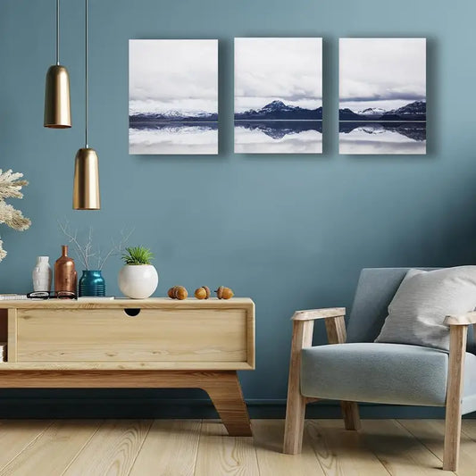 3pcs Snowy Mountain Lake Reflection Metal Print Ready to Hang Art