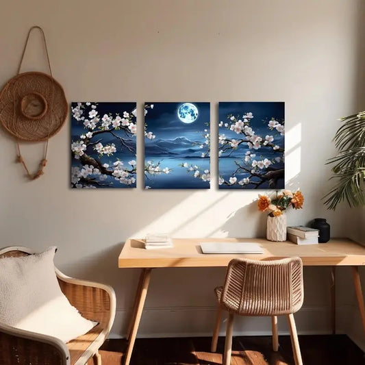 3pcs Dreamlike Cherry Blossom Moon Ocean Metal Print Ready to Hang Art
