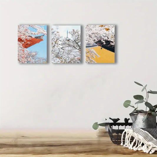3pcs Japanese Cherry Blossom Canvas Metal Print Ready to Hang Art