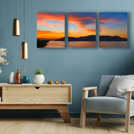 3pcs Mountain & Lake Landscape With Sunset Metal Print Ready to Hang Art