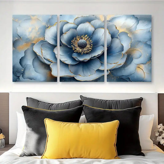 3pcs Blue Wild Rose Canvas Metal Print Ready to Hang Art