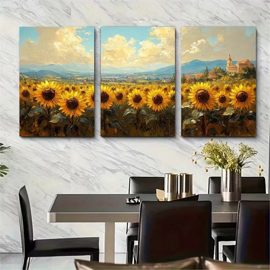 3pcs Sunflowers Metal Print Ready to Hang Art