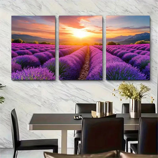 3pcs Lavender Fields Metal Print Ready to Hang Art