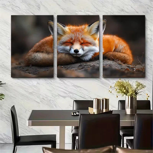 3pcs Sleeping FOX Metal Print Ready to Hang Art