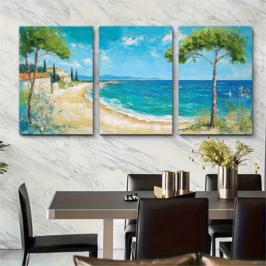 3pcs Mediterranean Beach Painting Metal Print Ready to Hang Art