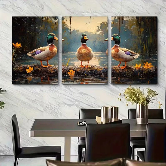 3pcs Duck Painting Metal Print Ready to Hang Art
