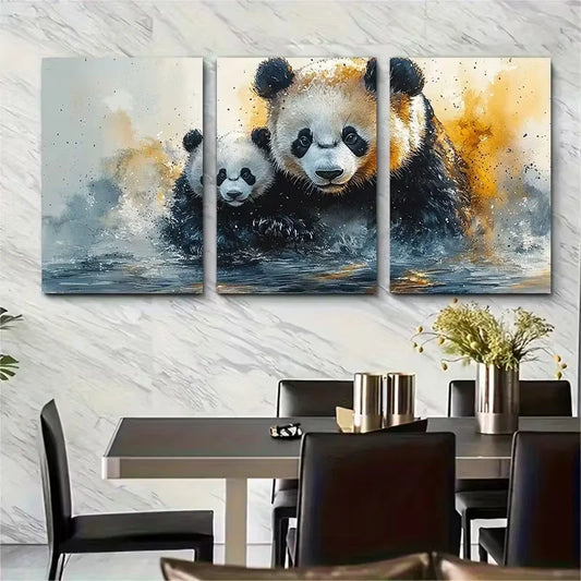 3pcs Mother Panda Cub Watercolor Metal Print Ready to Hang Art