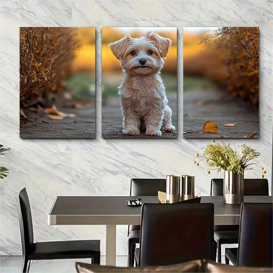 3pcs Curious Fluffy White Puppy Metal Print Ready to Hang Art