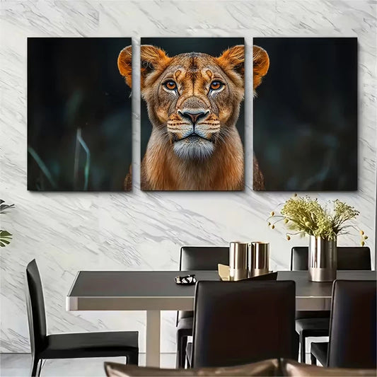 3pcs Elegant Lioness Metal Print Ready to Hang Art