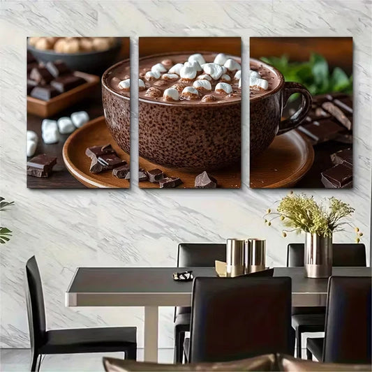 3pcs Frothy Hot Chocolate Metal Print Ready to Hang Art