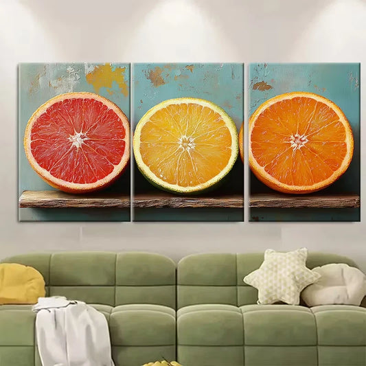 3pcs Vibrant Orange Teal Fruit Metal Print Ready to Hang Art
