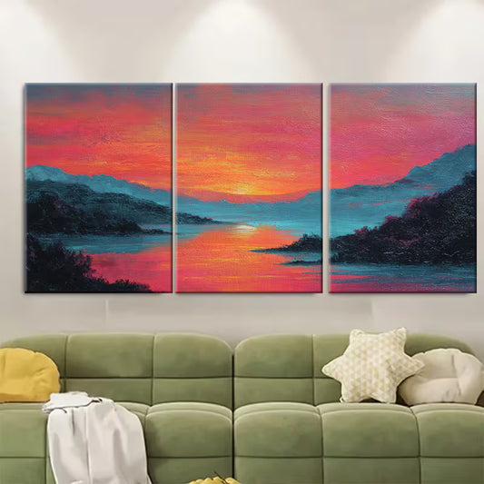 3pcs Seamless Continuous Artwork, Red Sunset Metal Print Ready to Hang Art