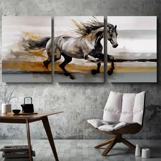 3pcs Speed Running Galloping Horse Metal Print Ready to Hang Art
