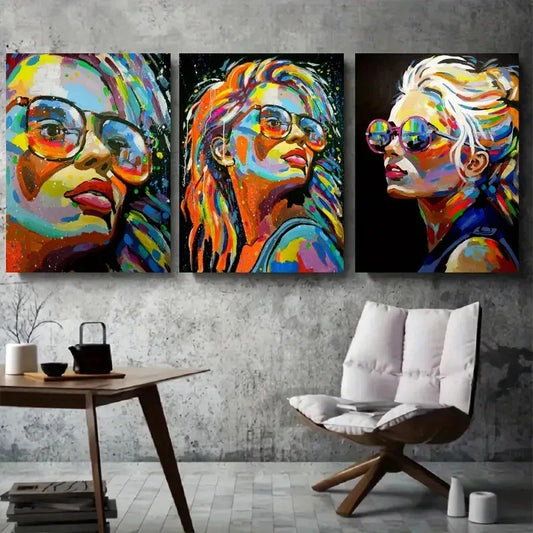 3pcs Vibrant Street Art Style Woman Metal Print Ready to Hang Art