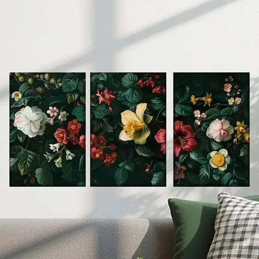 3pcs Flowers on a Black Background Wall Art Set Canvas Framed 40x60cm - High Quality Print 100% Australian Made Wall Canvas Ready to Hang