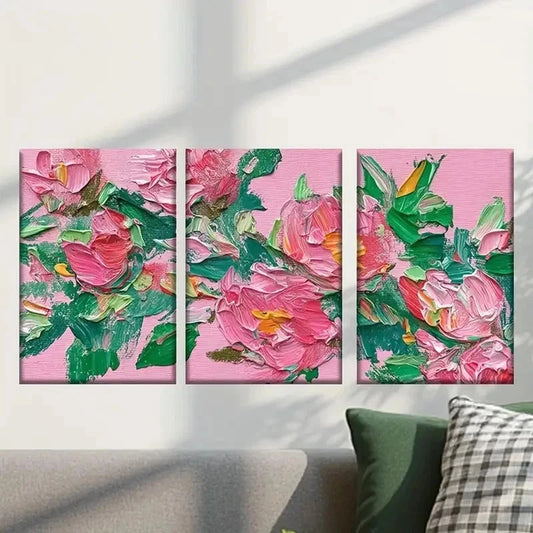 3pcs Vibrant Pink Flowers and Green Leaves Wall Art Set Canvas Framed 40x60cm - High Quality Print 100% Australian Made Wall Canvas Ready to Hang