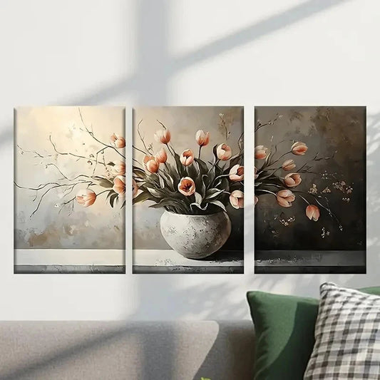 3pcs Colorful Tulip Flowers Painting Wall Art Set Canvas Framed 40x60cm - High Quality Print 100% Australian Made Wall Canvas Ready to Hang