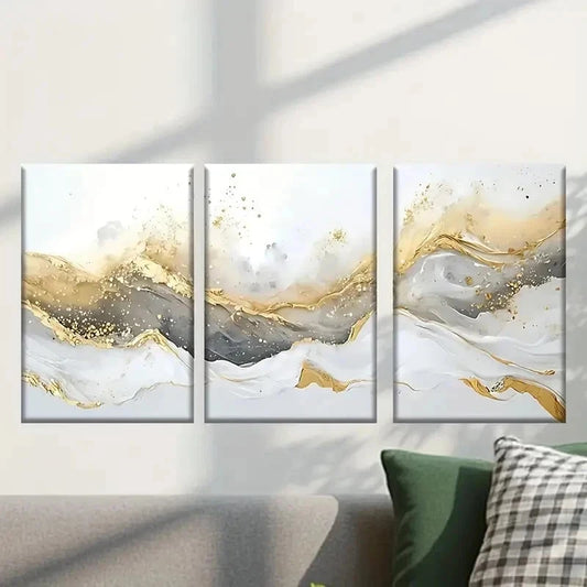 3pcs Golden & White Marble Design Wall Art Set Canvas Framed 40x60cm - High Quality Print 100% Australian Made Wall Canvas Ready to Hang