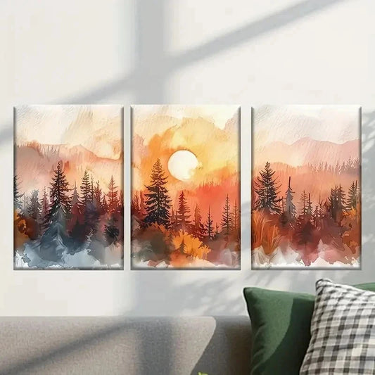 3pcs Landscape with Trees and Sunset Wall Art Set Canvas Framed 40x60cm - High Quality Print 100% Australian Made Wall Canvas Ready to Hang