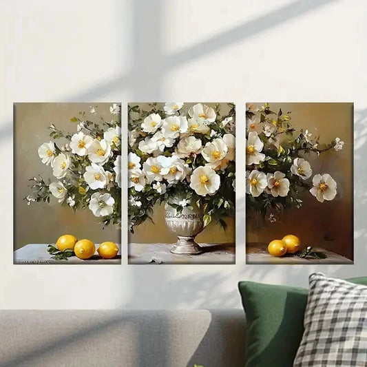 3pcs Vase of Flowers And Lemons Painting Wall Art Set Canvas Framed 40x60cm - High Quality Print 100% Australian Made Wall Canvas Ready to Hang