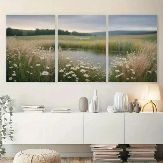 3pcs Wildflowers Meadow Pond Painting Metal Print Ready to Hang Art