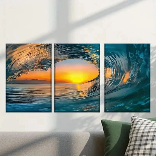 3pcs Waves in The Ocean During Sunset Wall Art Set Canvas Framed 40x60cm - High Quality Print 100% Australian Made Wall Canvas Ready to Hang