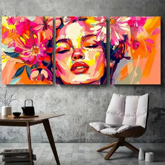 3pcs Vibrant Abstract Floral Female Metal Print Ready to Hang Art