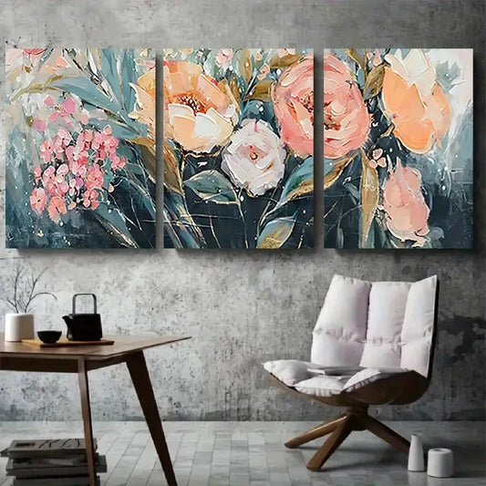 3pcs Pastel Floral Garland Blooming Metal Print Ready to Hang Art