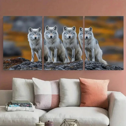 3pcs Distant View of Wolves in Nature Scene Metal Print Ready to Hang Art