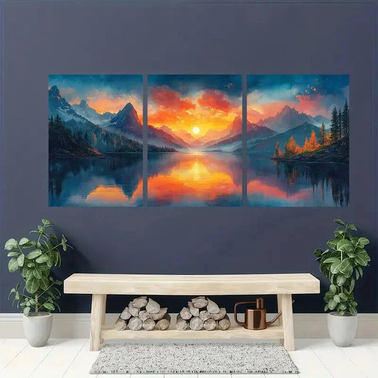 3pcs Vibrant Serene Mountain Landscape Scene Metal Print Ready to Hang Art