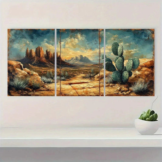 3pcs Dark Prickly Pear Cactus Desert Painting Metal Print Ready to Hang Art