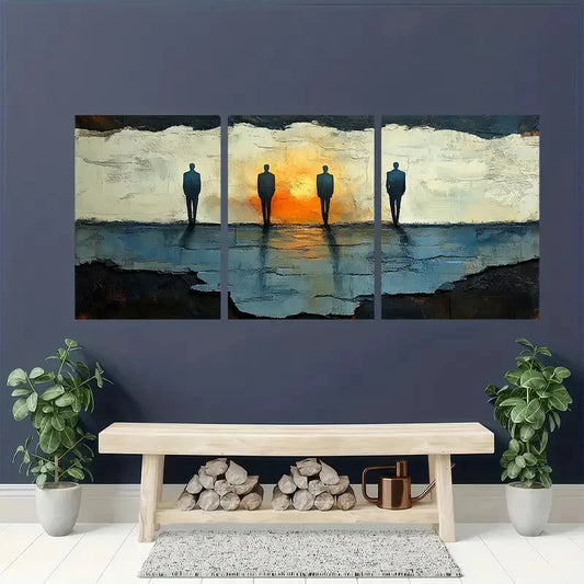3pcs Minimalist Figures in Serene Beige & Blue Hue Metal Print Ready to Hang Art