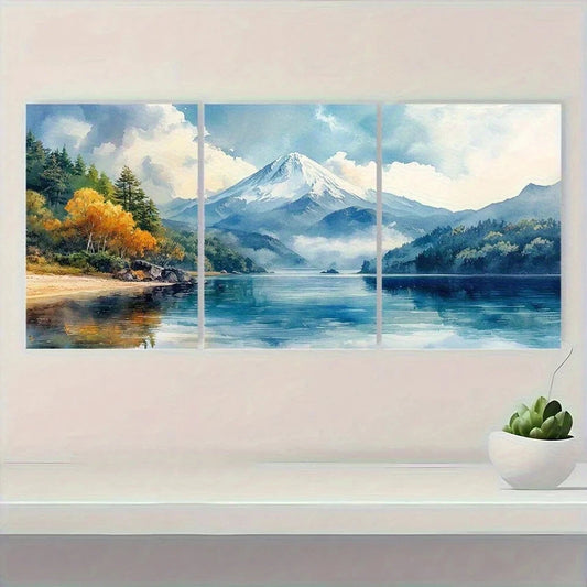 3pcs Vintage Watercolor Mountain Metal Print Ready to Hang Art