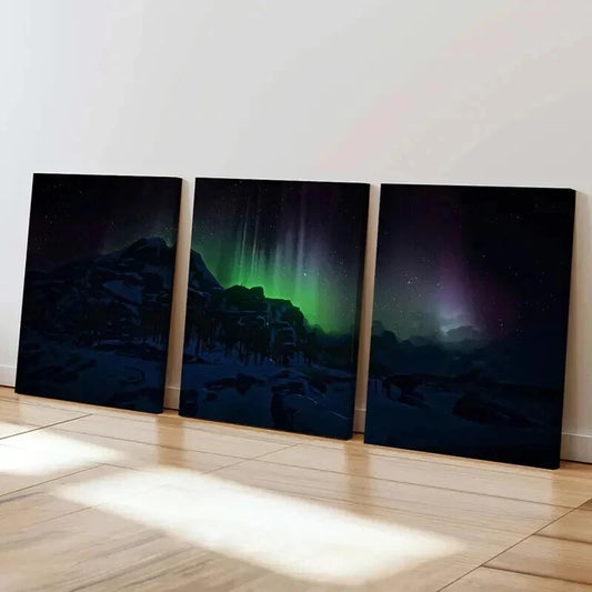3pcs Natural Aurora in Snowy Landscape Wall Art Set Canvas Framed 40x60cm - High Quality Print 100% Australian Made Wall Canvas Ready to Hang
