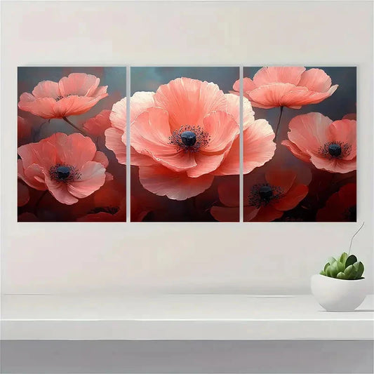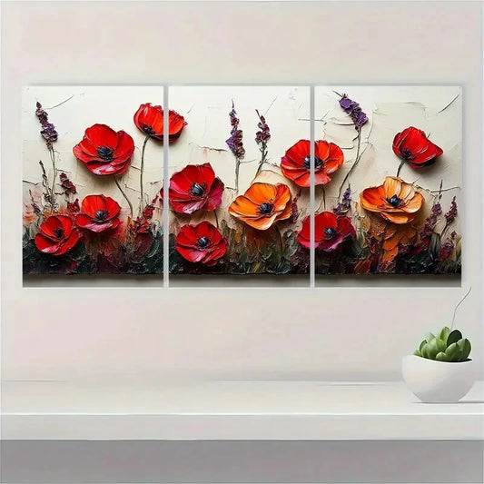3pcs Red Poppies Light White Flower Perfect Wall Art Set Canvas Framed 40x60cm - High Quality Print 100% Australian Made Wall Canvas Ready to Hang