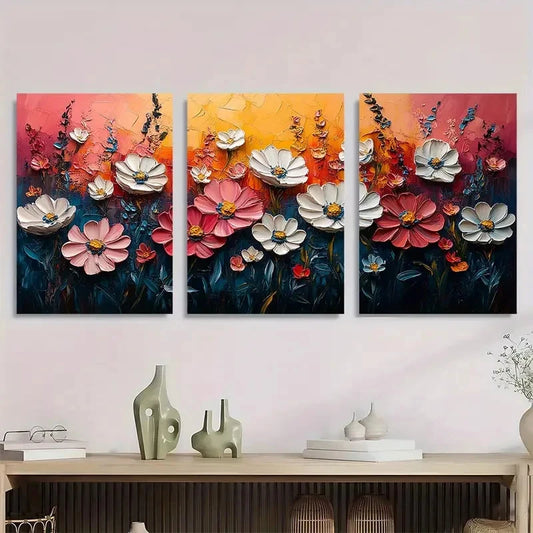 3pcs Pink Meadow & Wildflower Textured Perfect Wall Art Set Canvas Framed 40x60cm - High Quality Print 100% Australian Made Wall Canvas Ready to Hang
