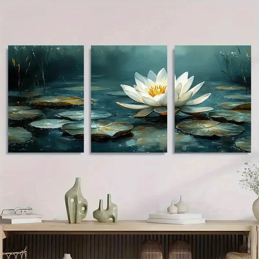 3pcs White Lotus Flower Elegant Perfect Wall Art Set Canvas Framed 40x60cm - High Quality Print 100% Australian Made Wall Canvas Ready to Hang