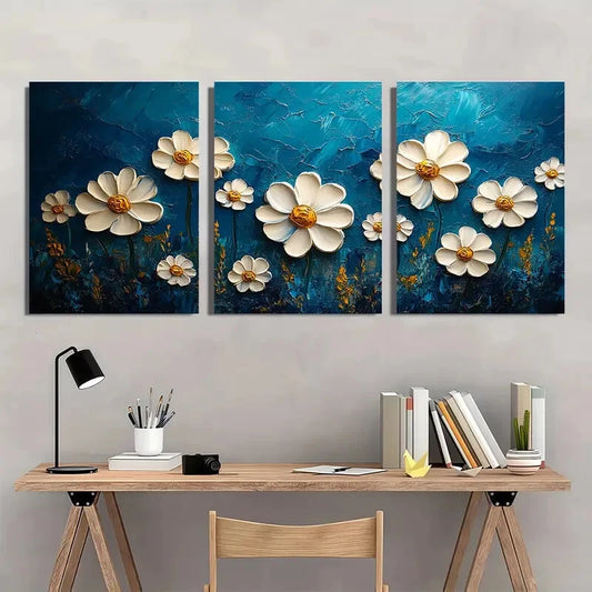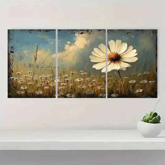3pcs Meadow White Flower Nature Perfect Wall Art Set Canvas Framed 40x60cm - High Quality Print 100% Australian Made Wall Canvas Ready to Hang