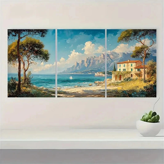 3pcs Long Landscape Seacoast Vintage Perfect Wall Art Set Canvas Framed 40x60cm - High Quality Print 100% Australian Made Wall Canvas Ready to Hang