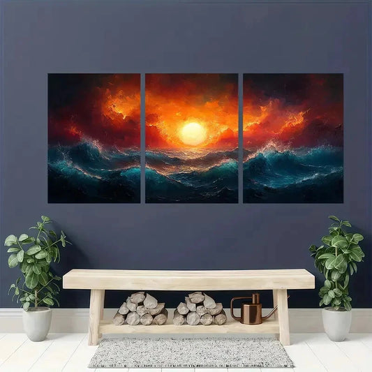 3pcs Abstract Stormy Sea Overdo Abstract Perfect Wall Art Set Canvas Framed 40x60cm - High Quality Print 100% Australian Made Wall Canvas Ready to Hang