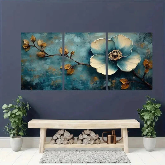 3pcs Jade Flower Perfect Blue Perfect Wall Art Set Canvas Framed 40x60cm - High Quality Print 100% Australian Made Wall Canvas Ready to Hang