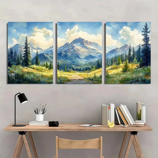 3pcs Abstract Wave & Mountain Landscape Perfect Wall Art Set Canvas Framed 40x60cm - High Quality Print 100% Australian Made Wall Canvas Ready to Hang