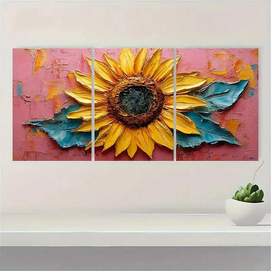 3pcs Sunflower Painting Flower Yellow Perfect Wall Art Set Canvas Framed 40x60cm - High Quality Print 100% Australian Made Wall Canvas Ready to Hang